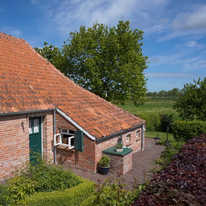 mit einem traumhaften Garten und einem unvergleichlichen Blick über die weite Marschlandschaft.