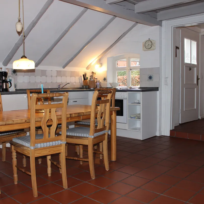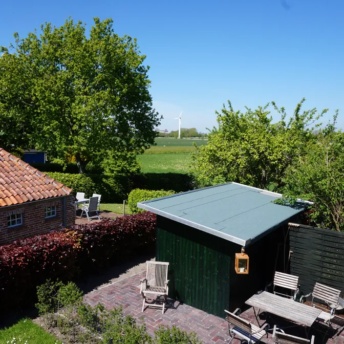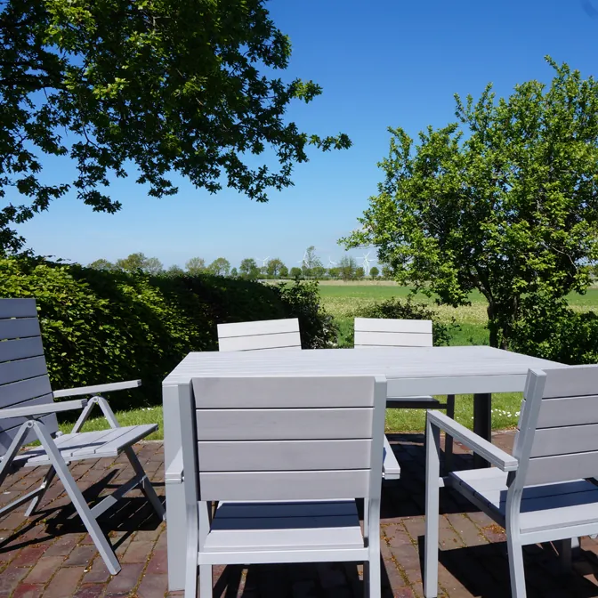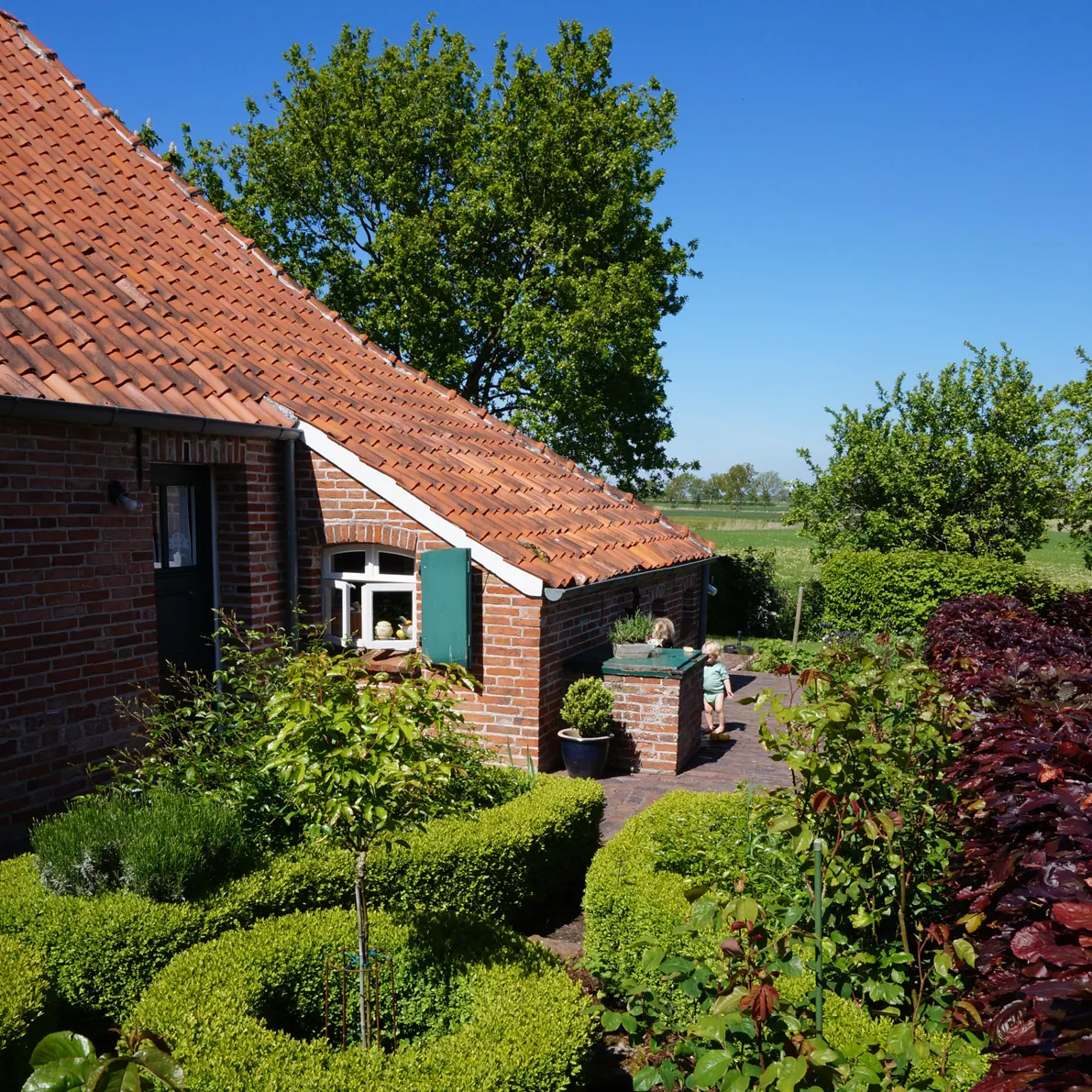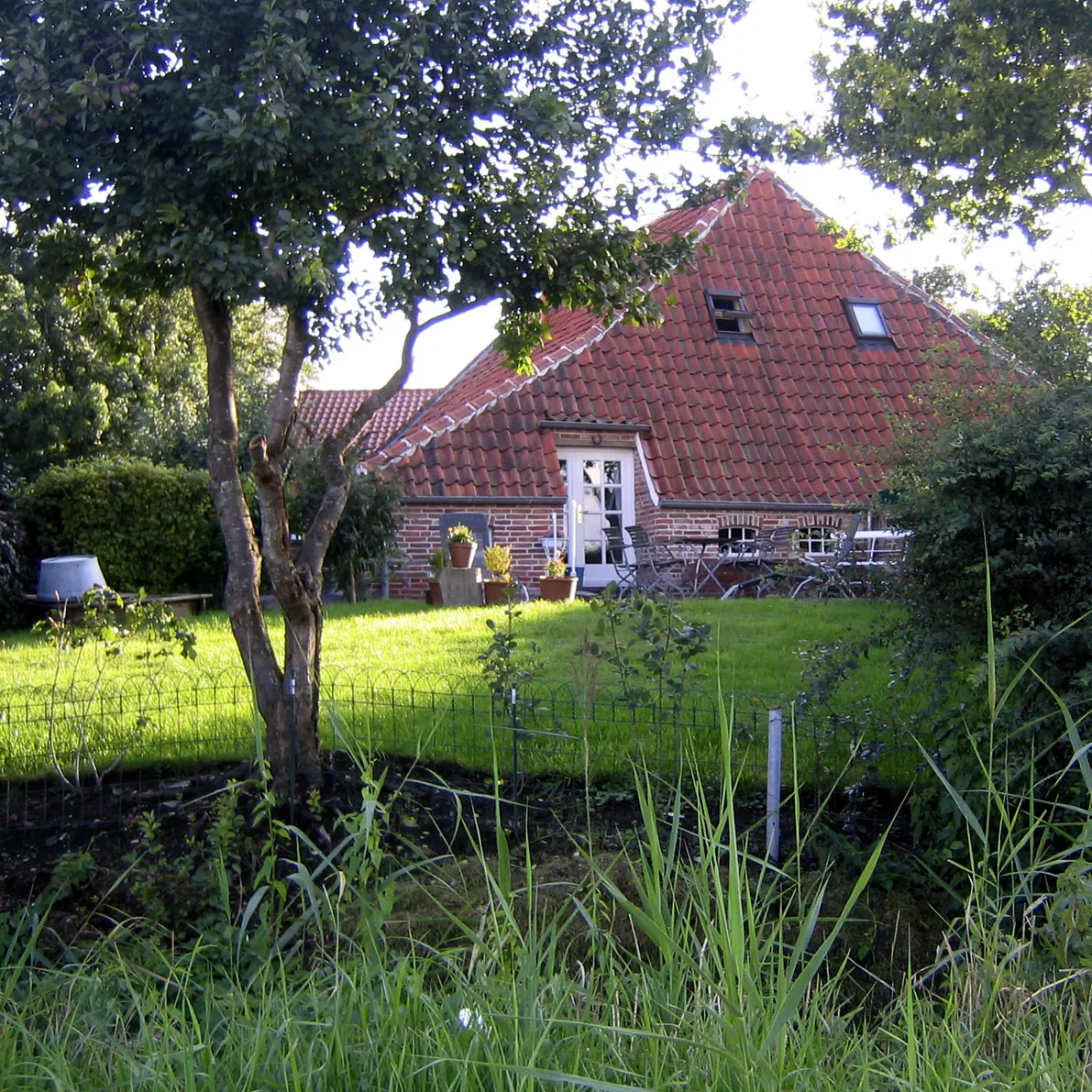 - Großer, durch Hecken abgeschlossener Garten (ca. 400 m²) mit alten Obstbäumen, Beerensträuchern sowie Blumen- und Kräutergarten und freiem Blick über die weite Marsch