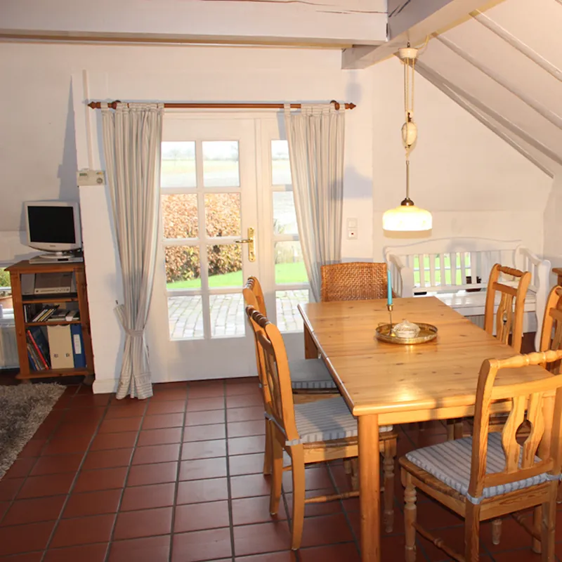 - Großer, durch Hecken abgeschlossener Garten (ca. 400 m²) mit alten Obstbäumen, Beerensträuchern sowie Blumen- und Kräutergarten und freiem Blick über die weite Marsch